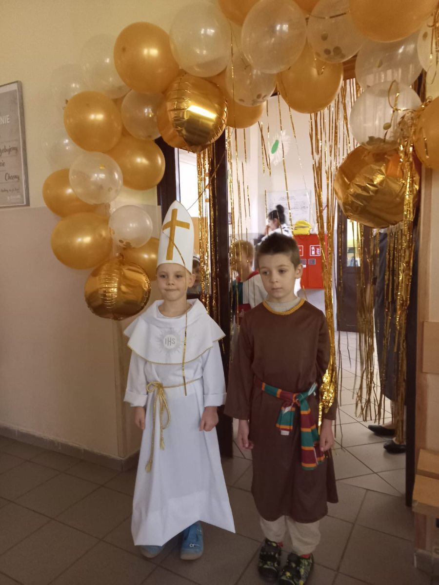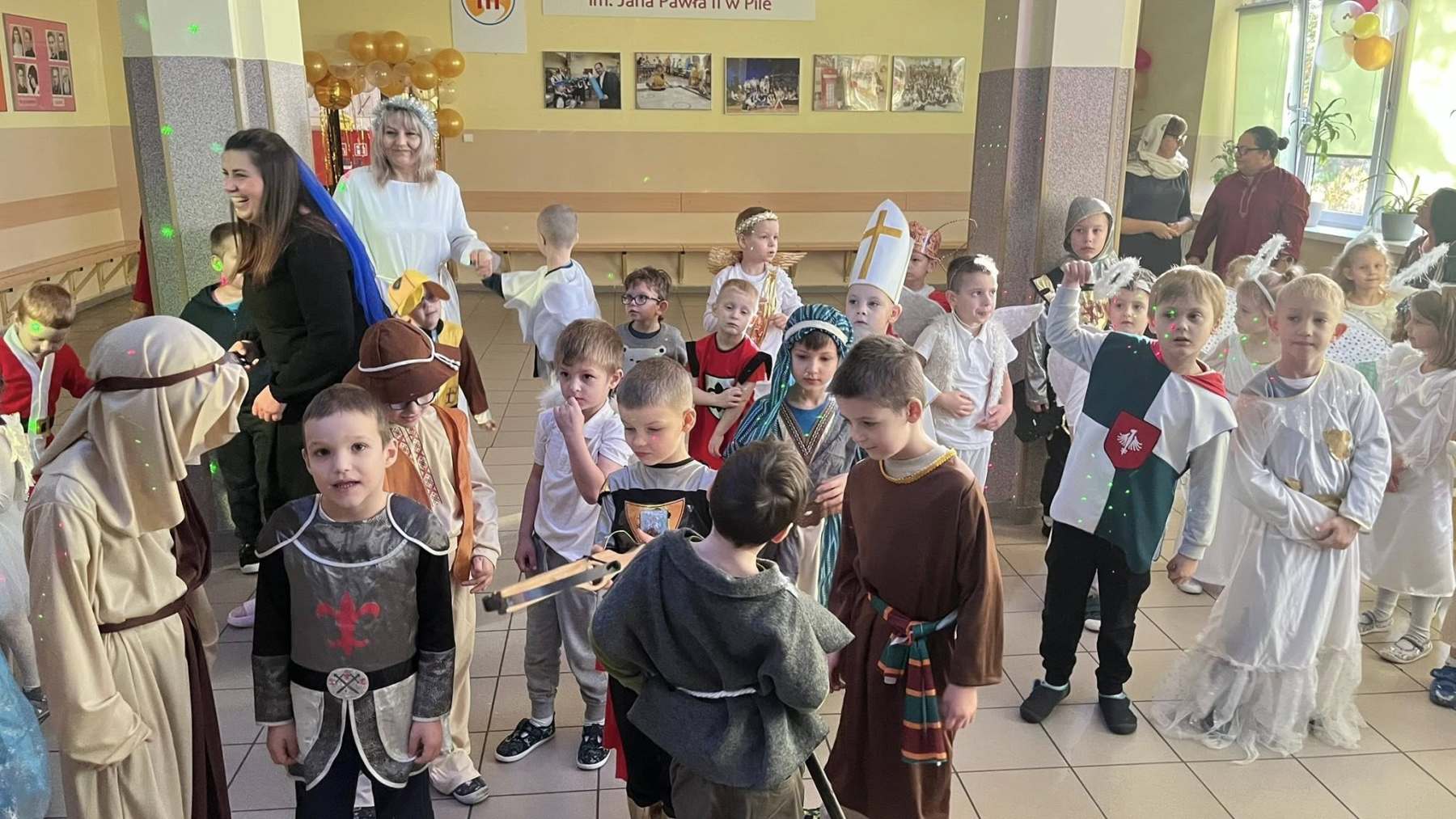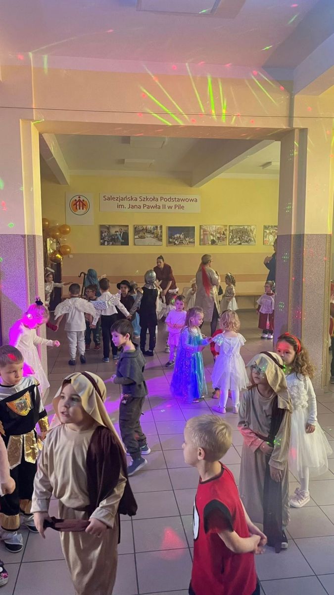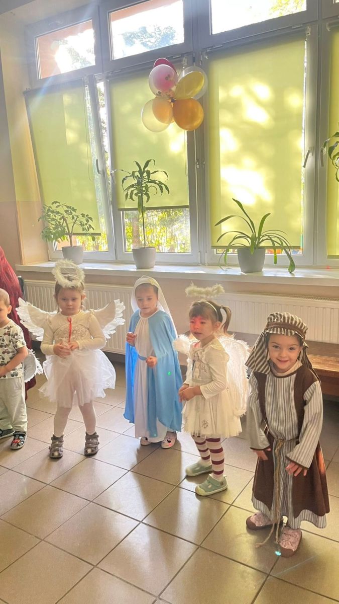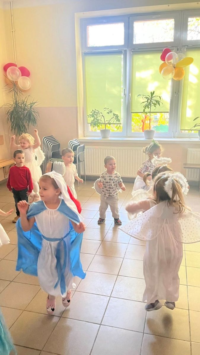 Każdy może być świętym przedszkolaki , poprzebierane w piękne stroje tańcowały i bawiły się na Balu Świętych