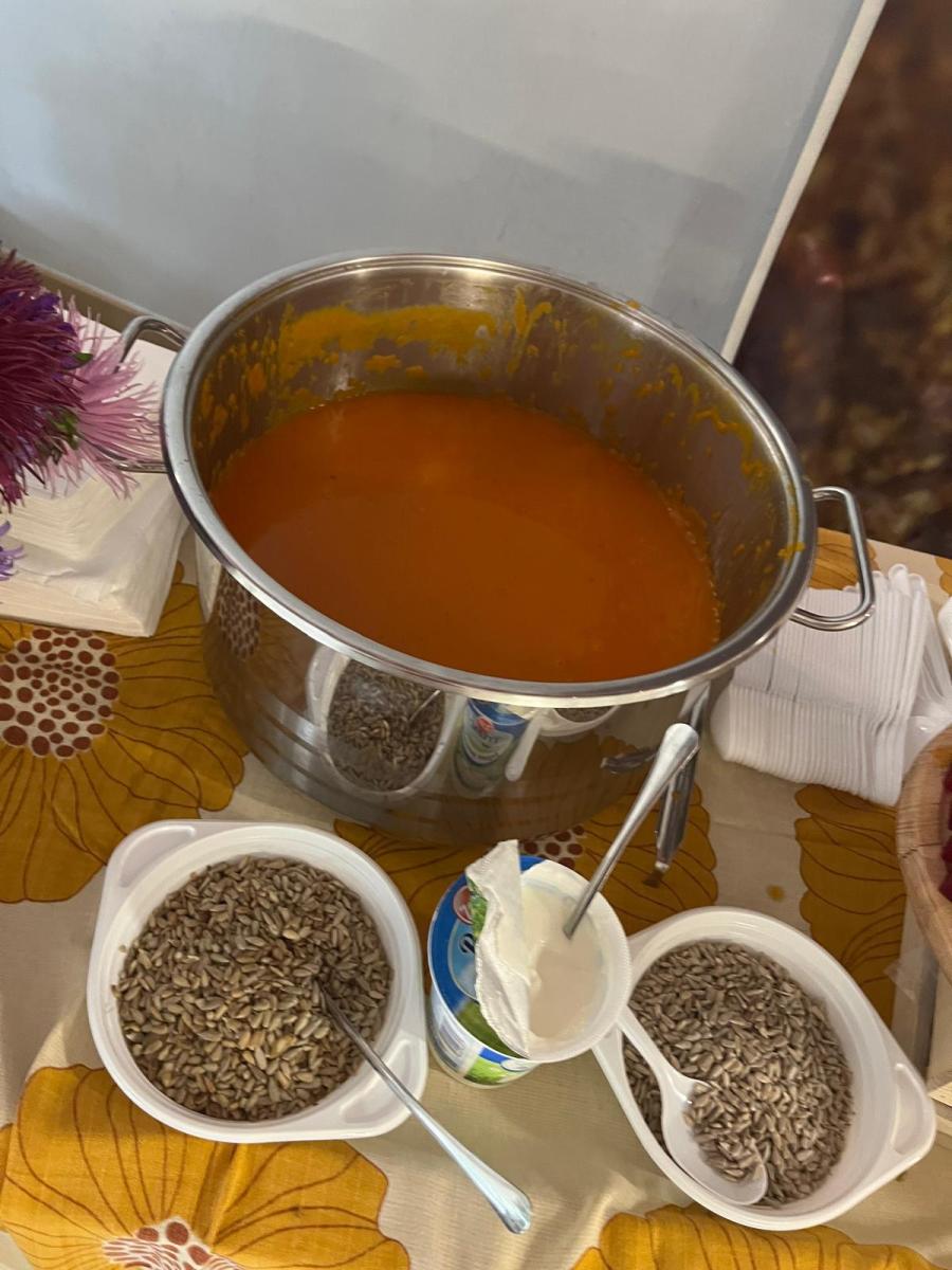 Podczas długiej przerwy można było skosztować zupy dyniowej, ziemniaków w mundurkach, pieczonych buraków i pysznych owoców.