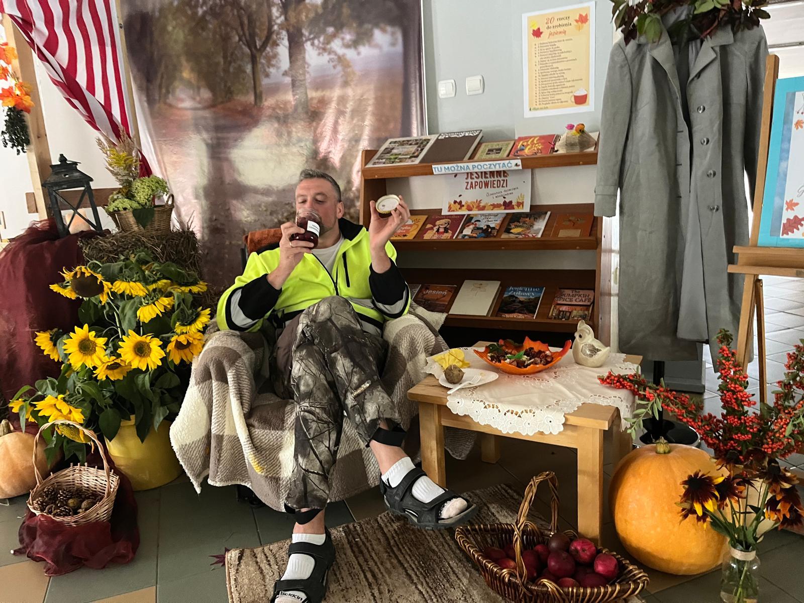 Natomiast w przytulnym kąciku czytelniczym, w otoczeniu wrzosów, słoneczników i astrów, każdy mógł zrobić sobie pamiątkowe zdjęcie. Kto powiedział, że jesień musi być ponura!?