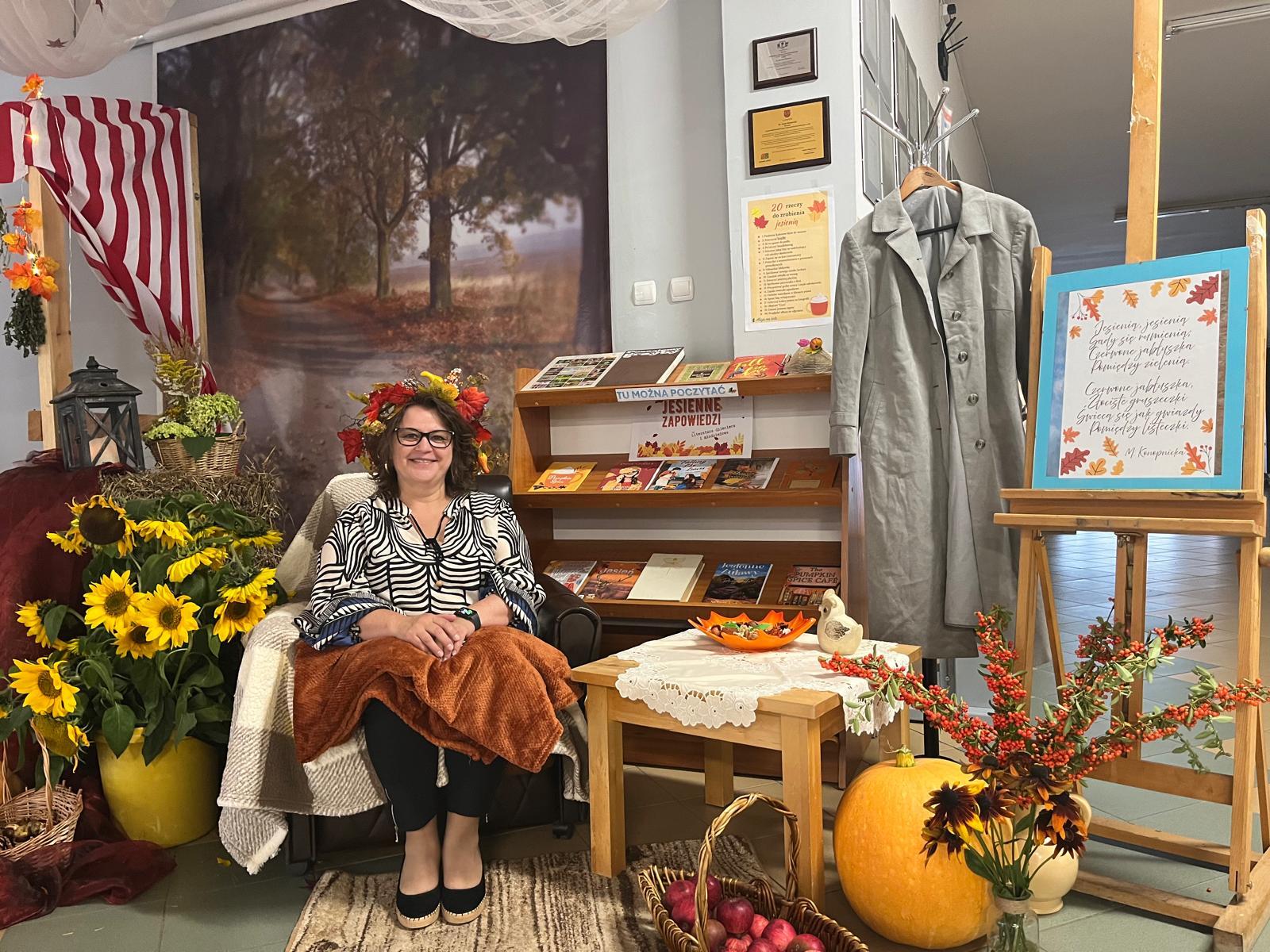 Natomiast w przytulnym kąciku czytelniczym, w otoczeniu wrzosów, słoneczników i astrów, każdy mógł zrobić sobie pamiątkowe zdjęcie. Kto powiedział, że jesień musi być ponura!?