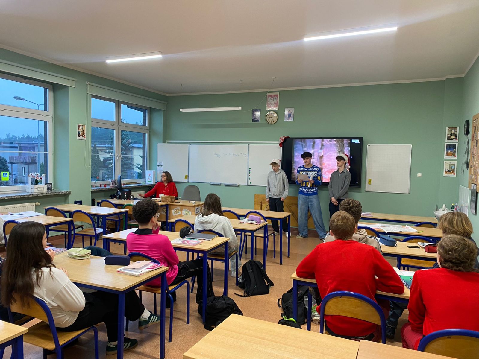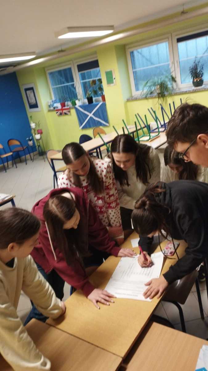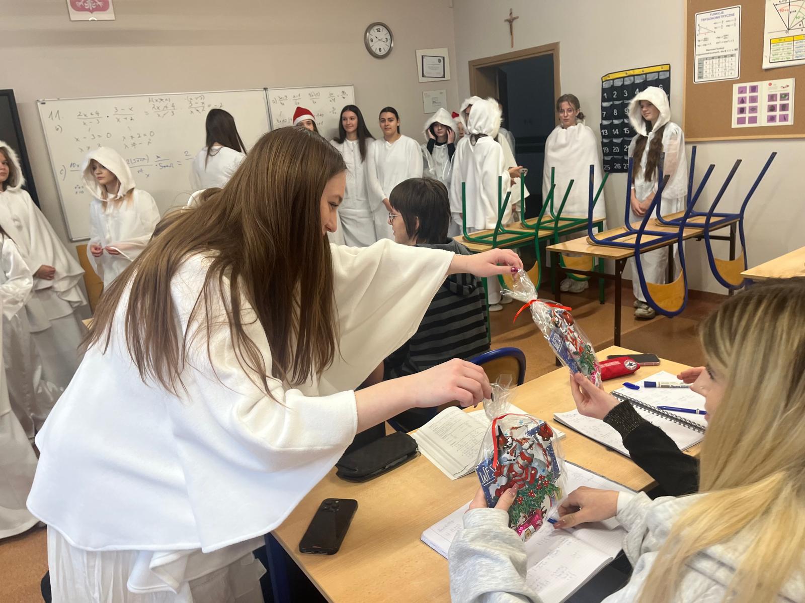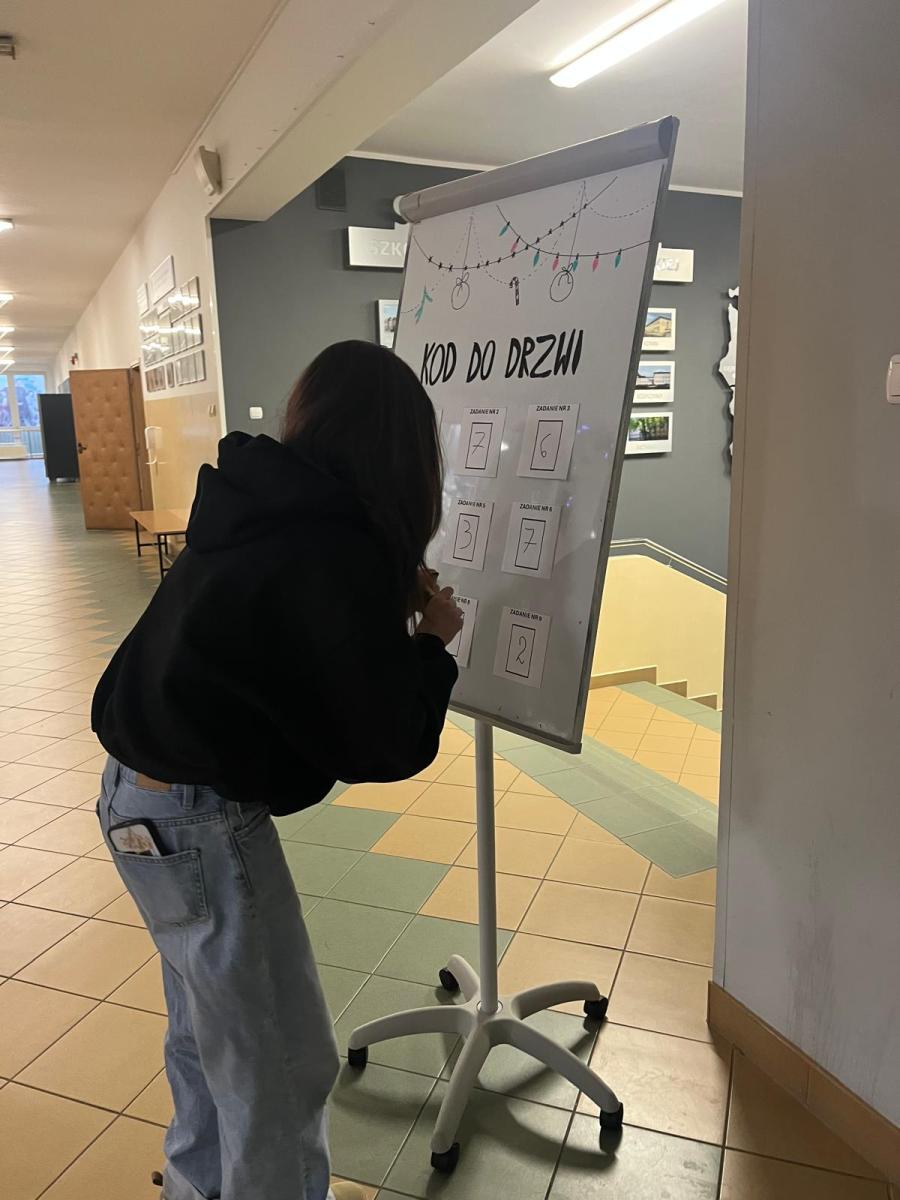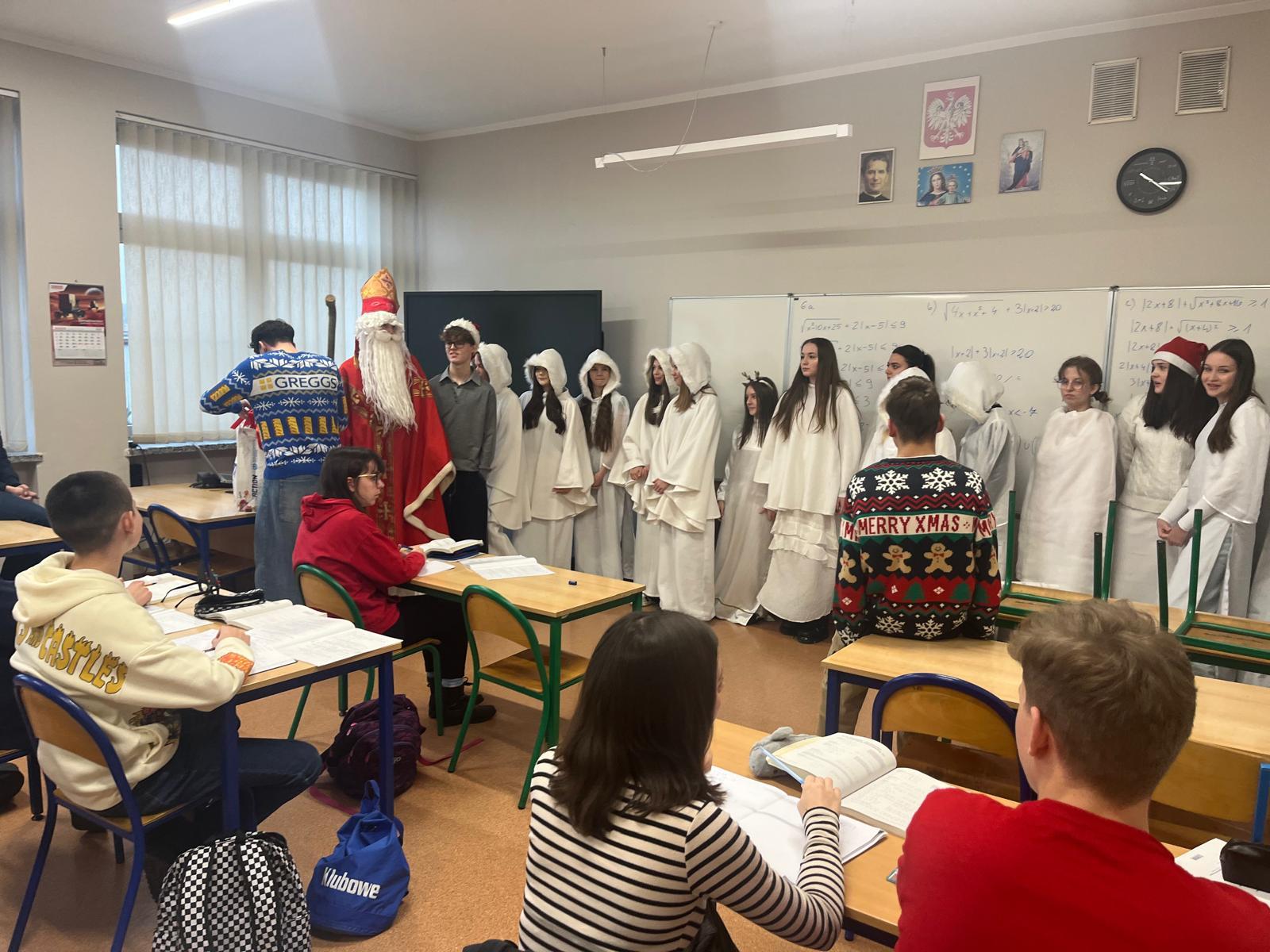 Samorząd Uczniowski w tym roku przygotował mikołajkową niespodziankę, a mianowicie: uczniowie wszystkich klas musieli rozwiązać zadania / rebusy, aby uwolnić Świętego Mikołaja, który został uwięziony pod tajemnym kodem.