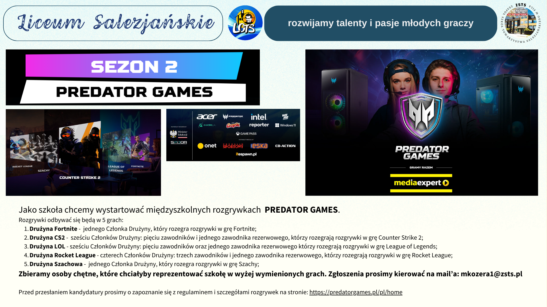 Składamy ekipę do startu w międzyszkolnych rozgrywkach PREDATOR GAMES !!