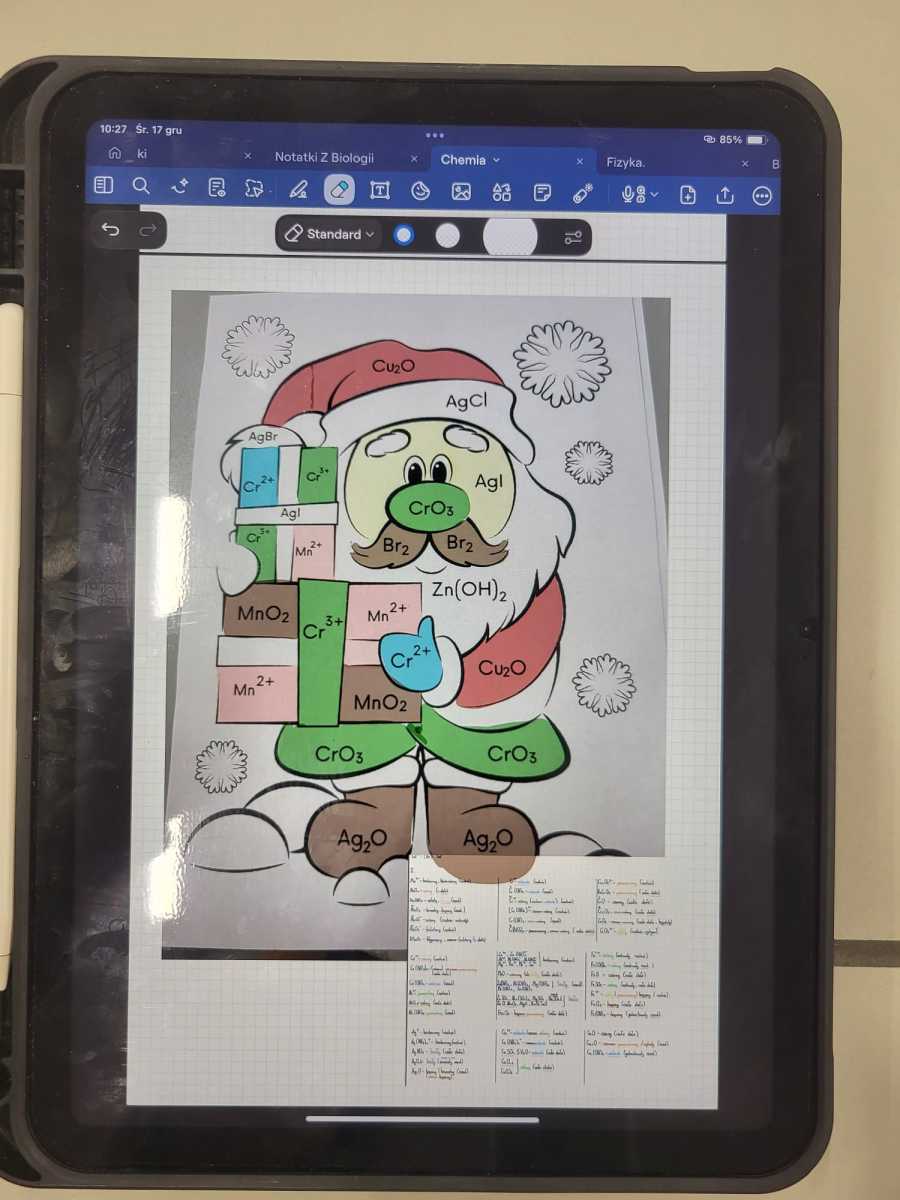 Klasy 3C, 2A i 1A+1B na ostatnich lekcjach chemii w 2025 roku wykonywany świąteczne zadania. 🎄