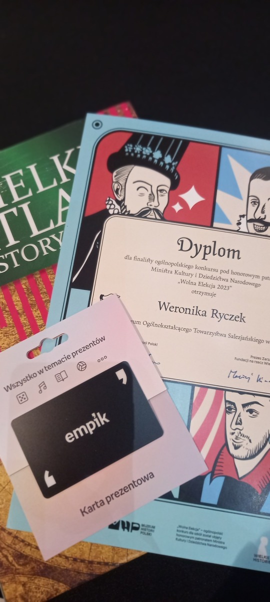 Weronika Ryczek z klasy 3a została finalistką Ogólnopolskiego Konkursu „Wolna Elekcja 2023”, który odbył się 15 grudnia br. w Muzeum Historii Polski w Warszawie.