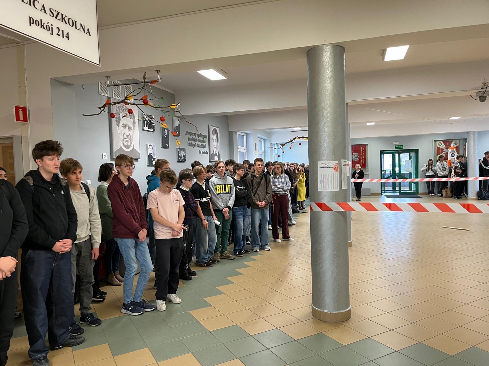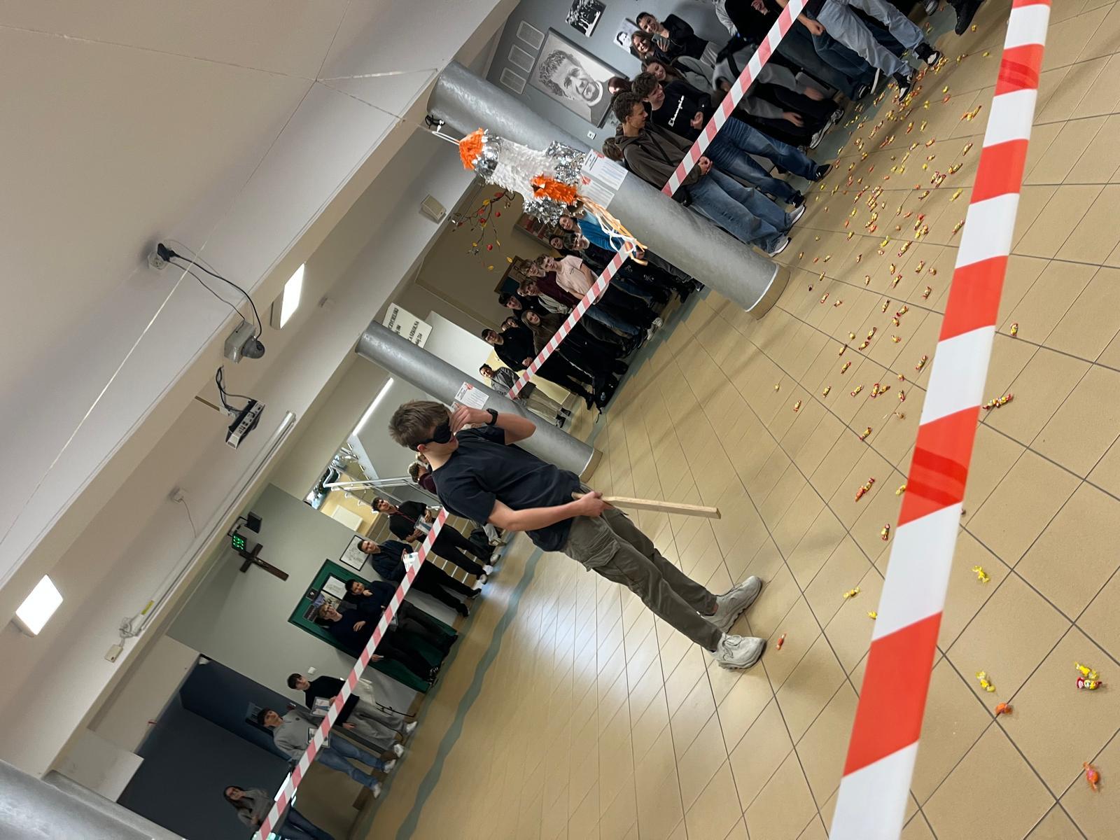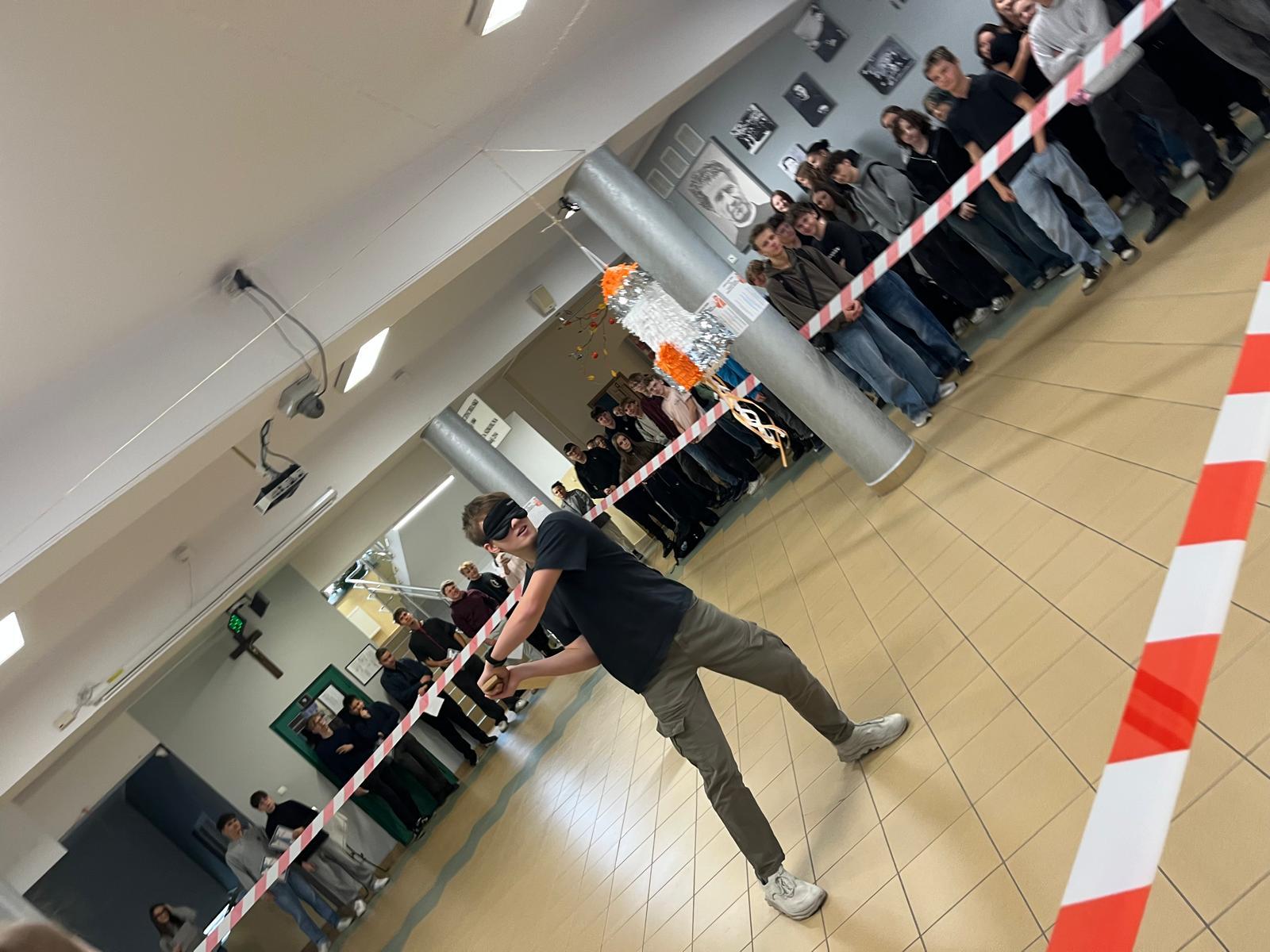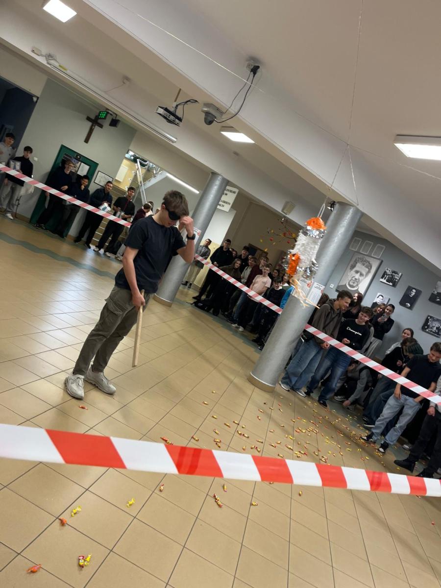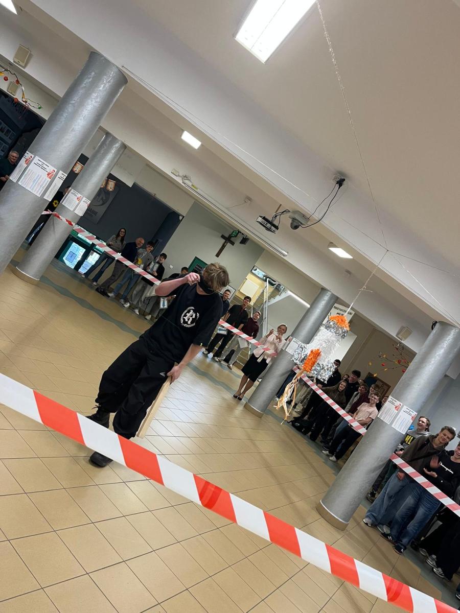 Na koniec Tymon Stasiaczek z klasy 2a rozbił – przygotowaną specjalnie na tę okazję i wypełnioną po brzegi
