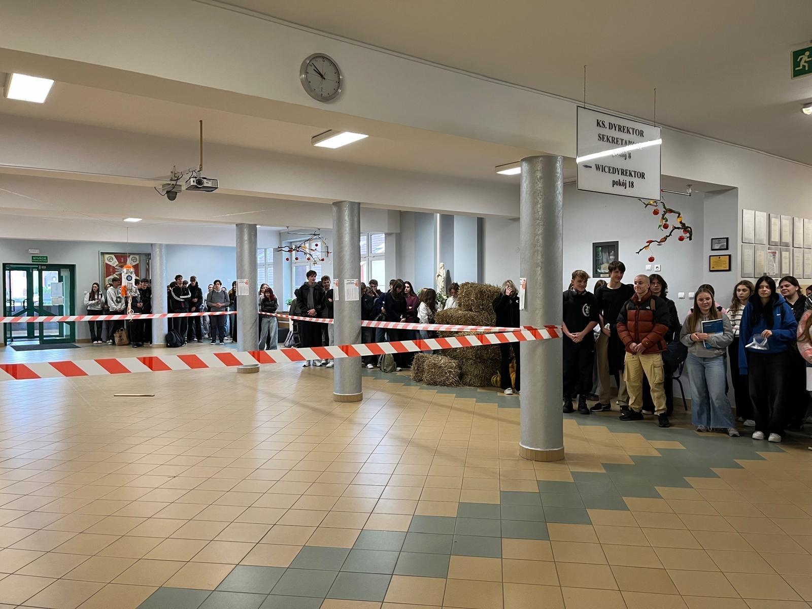 Na koniec Tymon Stasiaczek z klasy 2a rozbił – przygotowaną specjalnie na tę okazję i wypełnioną po brzegi